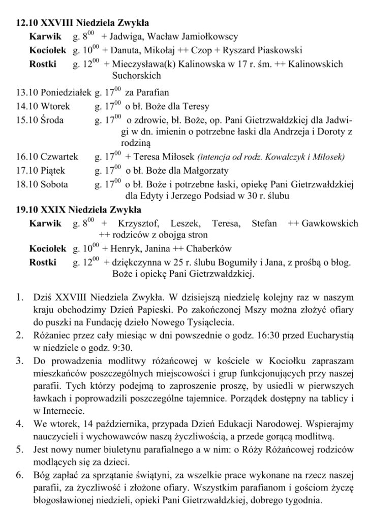 OGŁOSZENIA 12.10.2025